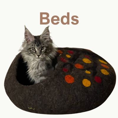 Choose beds made from non-toxic, pet-safe materials with stable, non-slip bases. Avoid sharp edges or cat tree bed designs that tip easily. Large cats need extremely sturdy cat tree beds to avoid tipping accidents. For very large cats, a dog bed can be a good choice, such as the Bessie & Barnie Cuddle Pod. Please visit the following link to explore the Cuddle Pod collection on their website: Cuddle Pod. Enclosed or high-sided beds can provide reassurance, while softer, open designs are better suited to relaxed moments. Safety and comfort together encourage trust and relaxation. Each cat is an individual with unique preferences, and by observing whether they prefer a calming faux fur bed, soft fleece, smooth cotton, firm woven, or felted wool, you can choose bedding that truly suits their comfort.